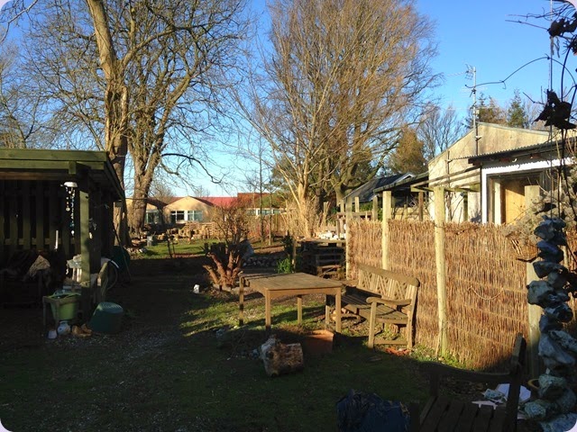 Udenfor i dag blev bede inspiceret og bænken afprøvet. Den holder endnu. På sådan en dag er det kun ren viljestyrke, der afholder mig fra at flå afdækningen af alle bedene, for nedenunder skyder det frem med liv, men jeg GØR det ikke. Ikke endnu. Der kommer sikkert mange nætter og dage endnu med barskt vejr, så jeg må holde mig i skindet.